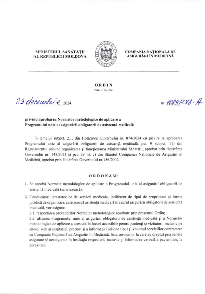 Programul unic al Asigurării Obligatorii de Asistenţă Medicală https://ms.gov.md/wp-content/uploads/2025/01/Ordin1089-288-A.pdf